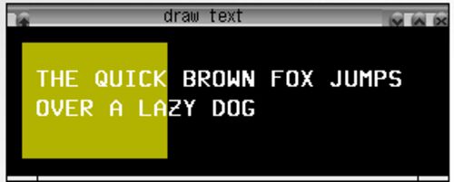 glbooks/example8-2.scmを参考に code ;; Example 8-2 Drawing a Complete Font ;;(use gauche.experimental.lamb) (add-load-path "..") (use graphics.imlib2) (use gl.processing) (define draw (draw-once$ (lambda () (fill 0.7 0.7 0) (rect 10 10 100…